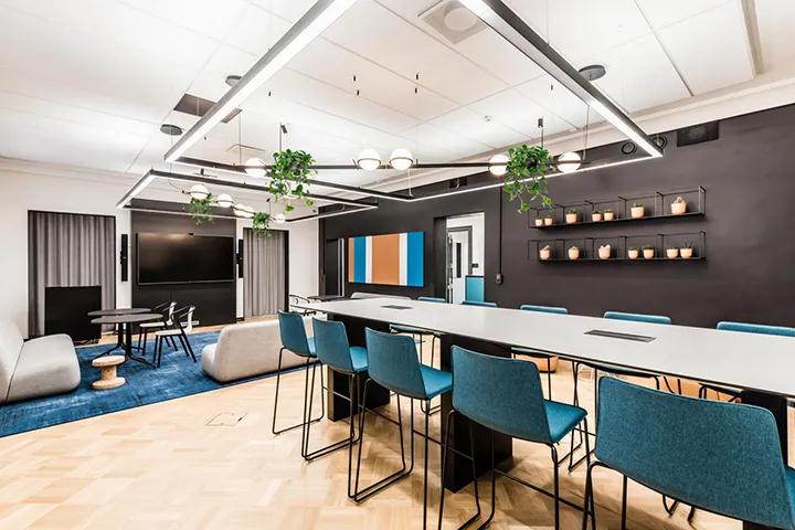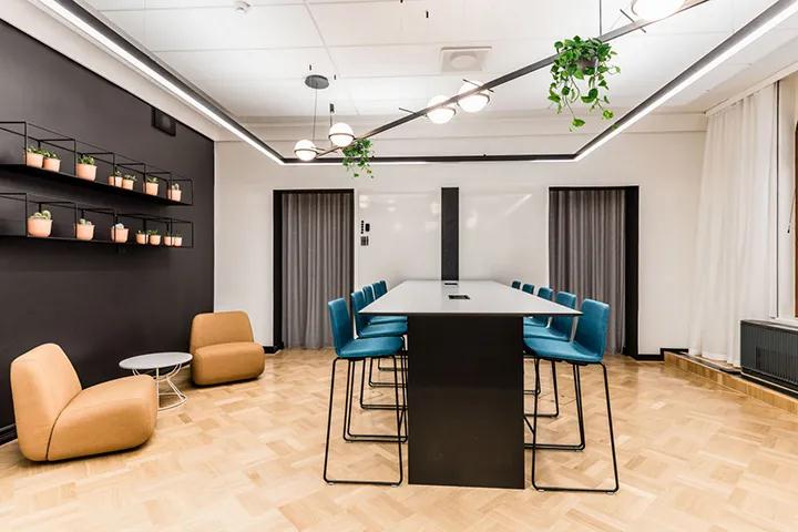该案例是一家软件平台公司,可帮助客户更准确地进行销售和市场推广。装饰设计的挑战是建筑与现代办公环境的结合,以及与当代品牌形象的结合。员工的参与对于设计至关重要。在项目开始时,各种研讨会,调查表和激烈的辩论为最终的设计决策奠定了基础。每个人对新环境的代表要求是创造一个舒适而独特的空间环境,以展示企业的价值和可持续性。通过对企业文化和经营实践的深入了解,装修设计团队采用醒目的色彩,舒适实用的家具,个性化的灯光和艺术氛围,最终营造出优雅,现代,愉悦的工作氛围。